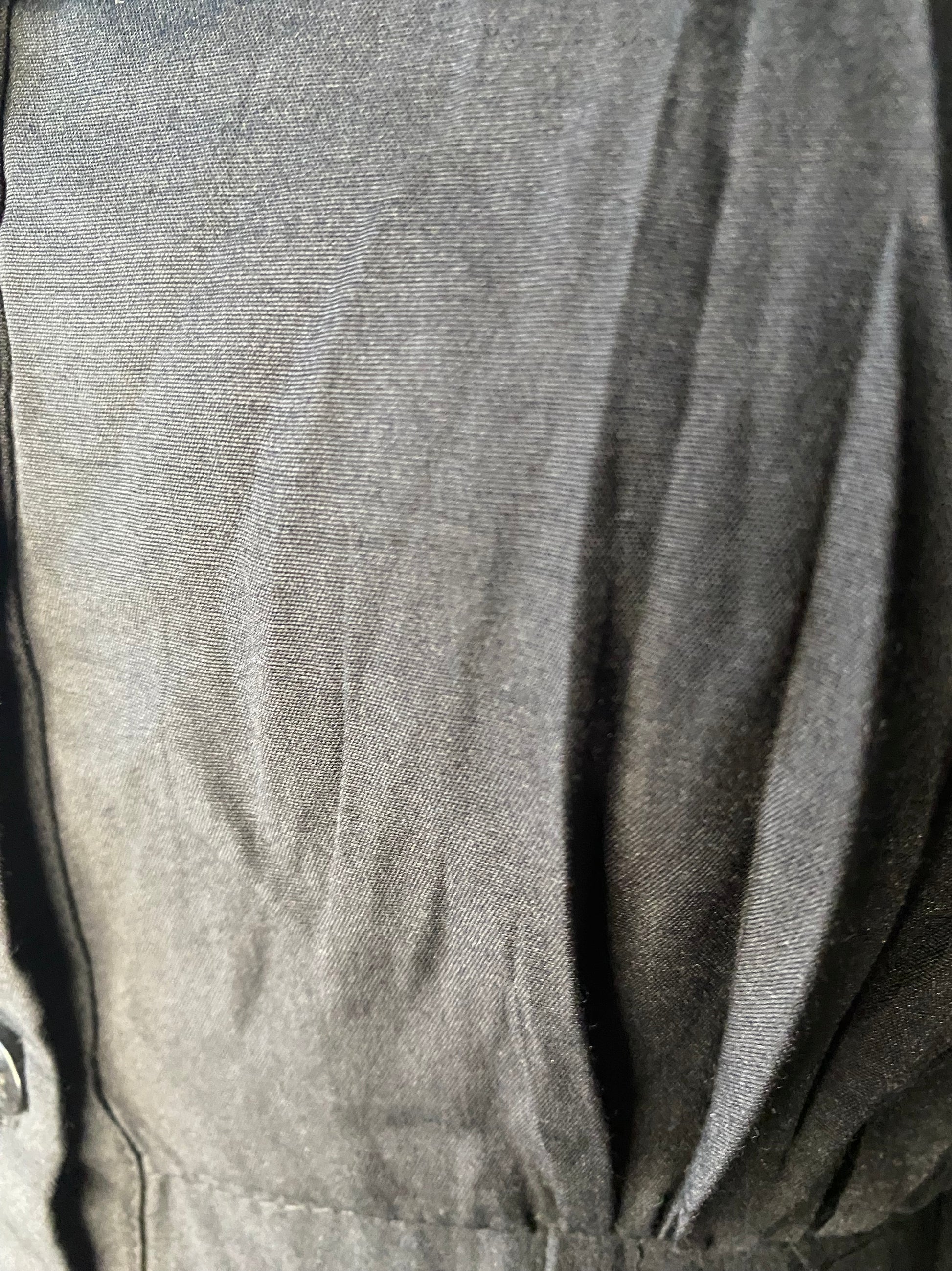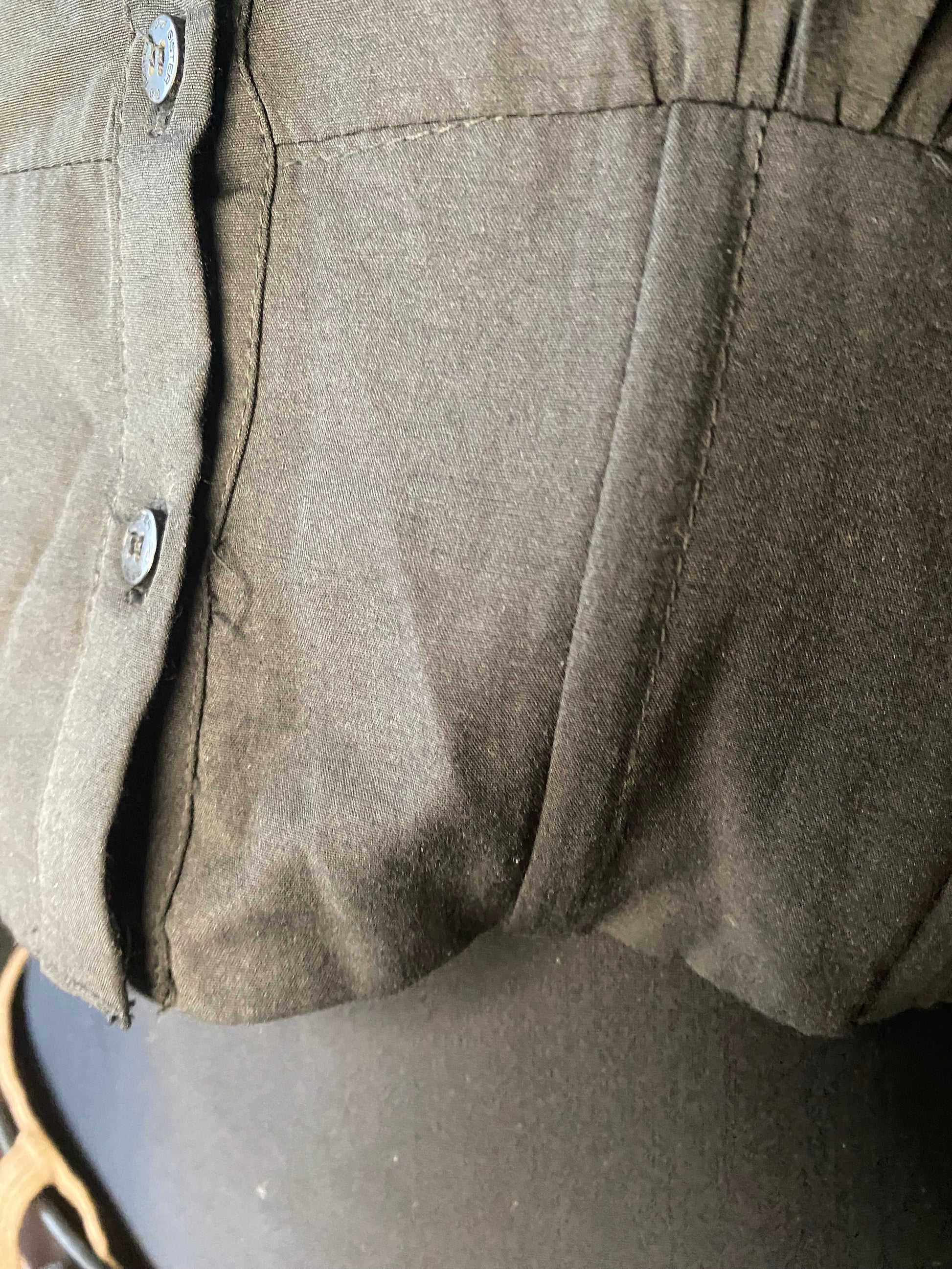 No visible defects. Good quality material. Not stretchy. Very flattering fit.