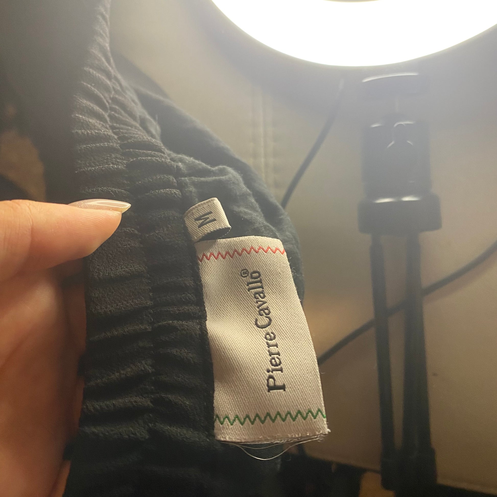 No visible defects. Extremely good quality material. Flowy. Not stretchy, escept for the waistband.
