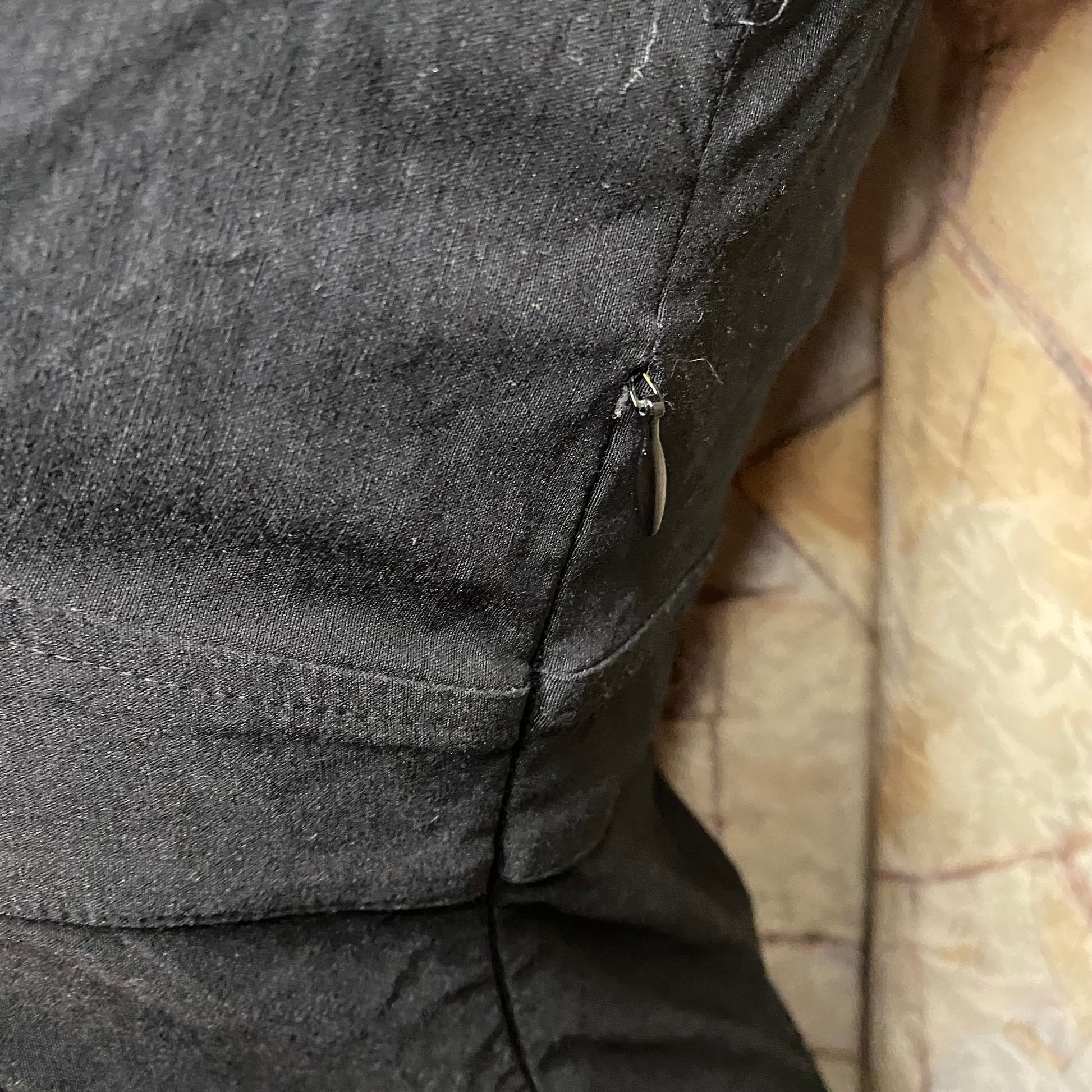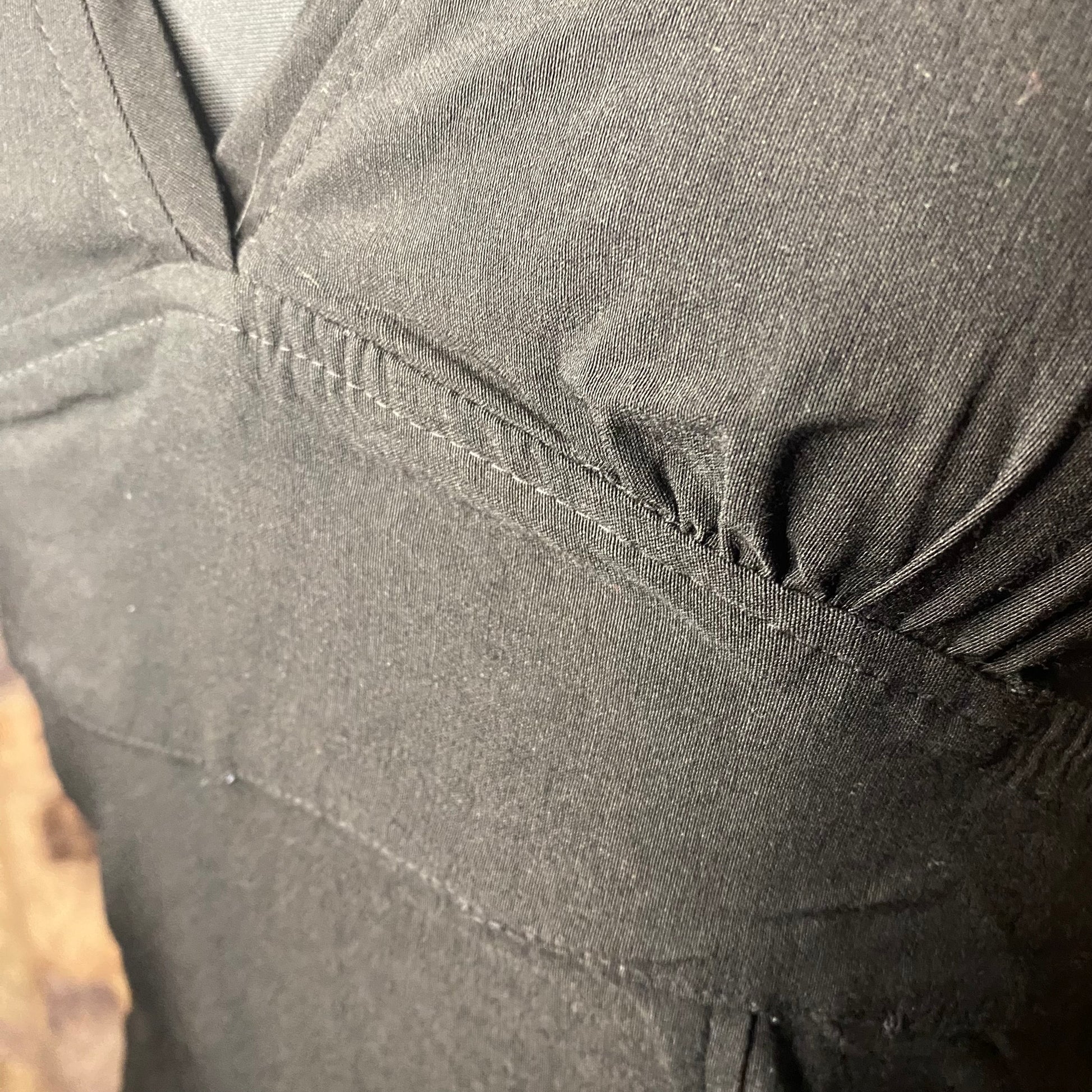 Good quality material. Very stretchy. Has a zipper on the side. A babydoll fit at the top part. Has a small hole in the back waist part. No other defects.