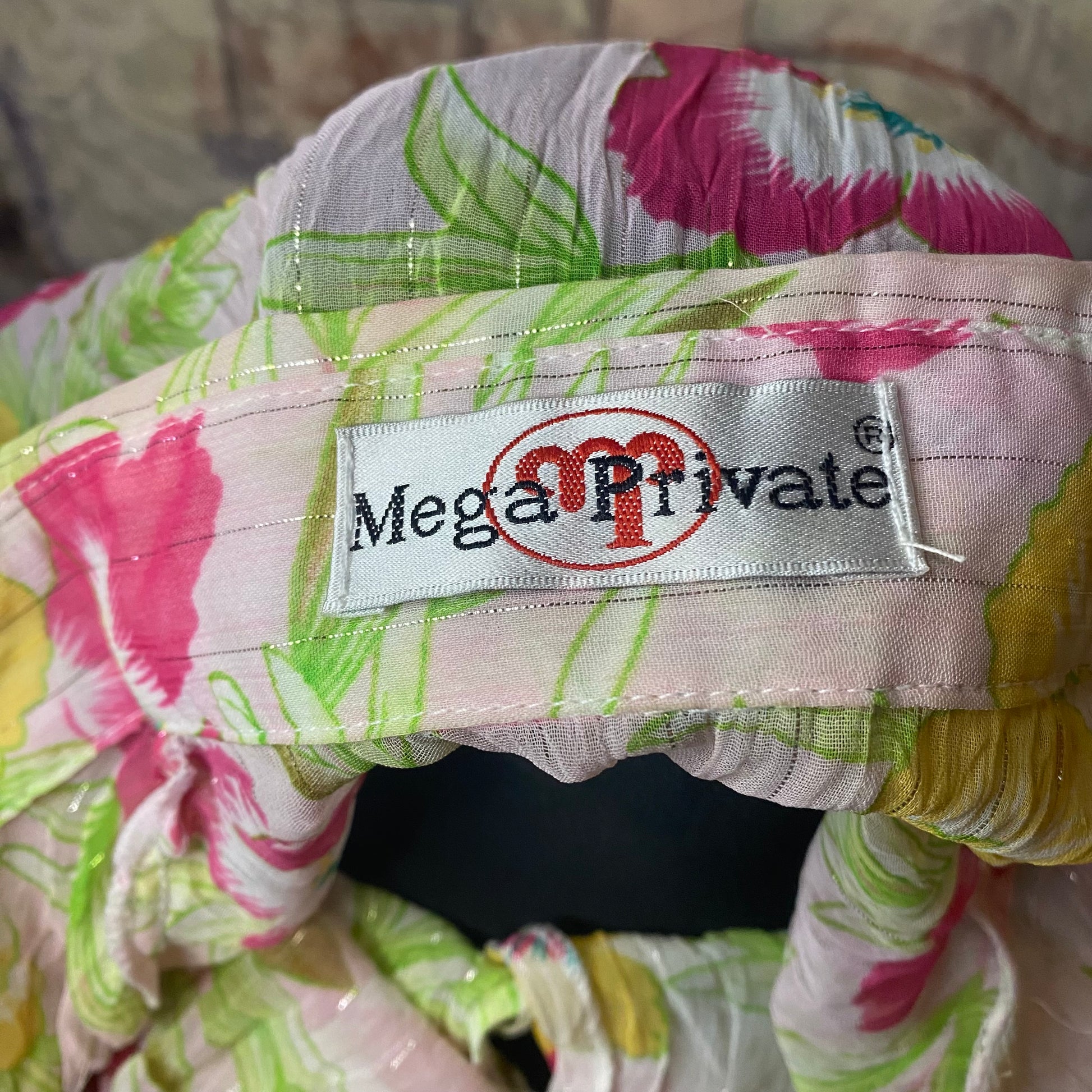 No visible defects. Very stretchy material. See-through design. Meant to have ruffled ends. Very pretty. No size label, will probably fit XS to M.