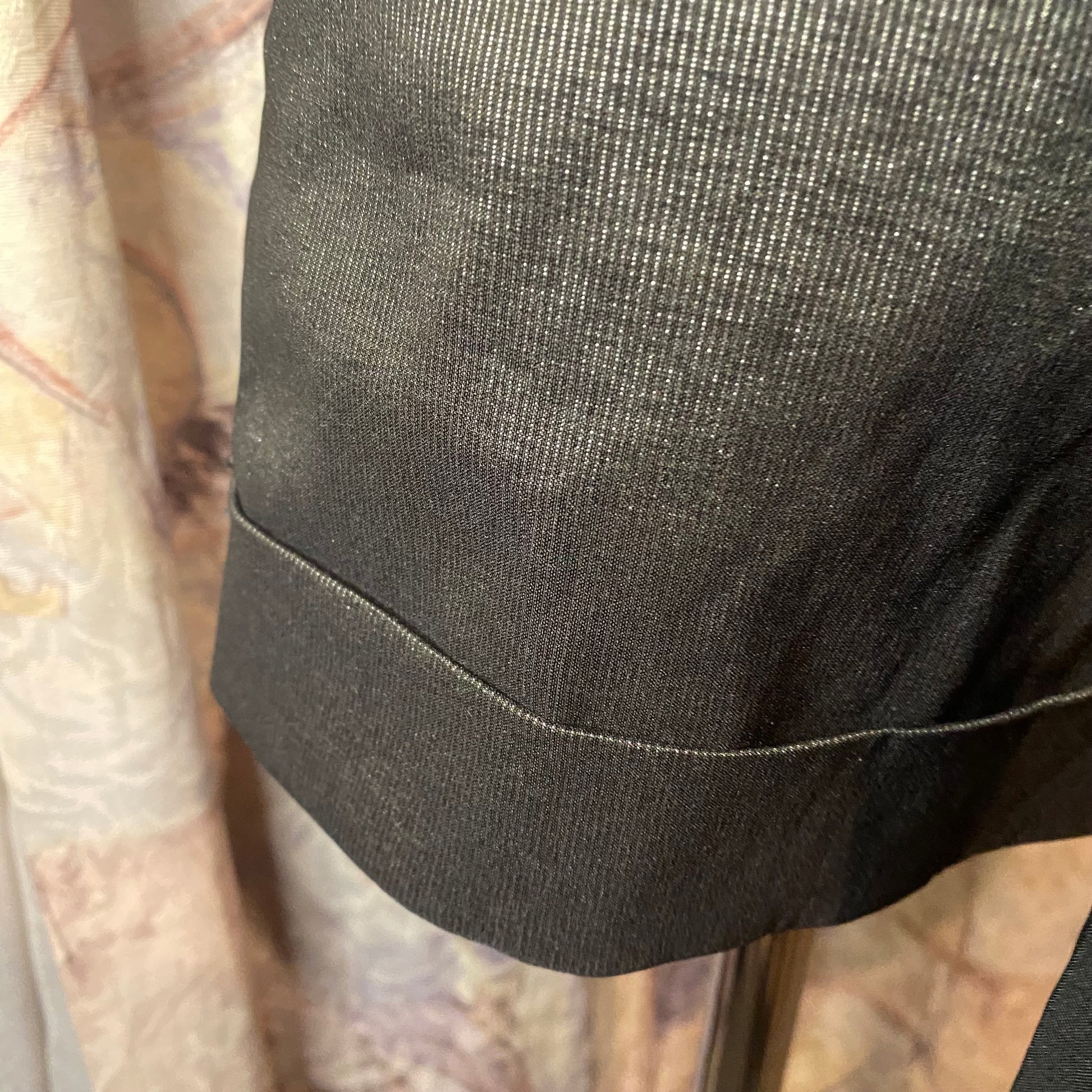 Good quality material. Not stretchy. No visible defects. Can be tied up to fit perfectly around the body.