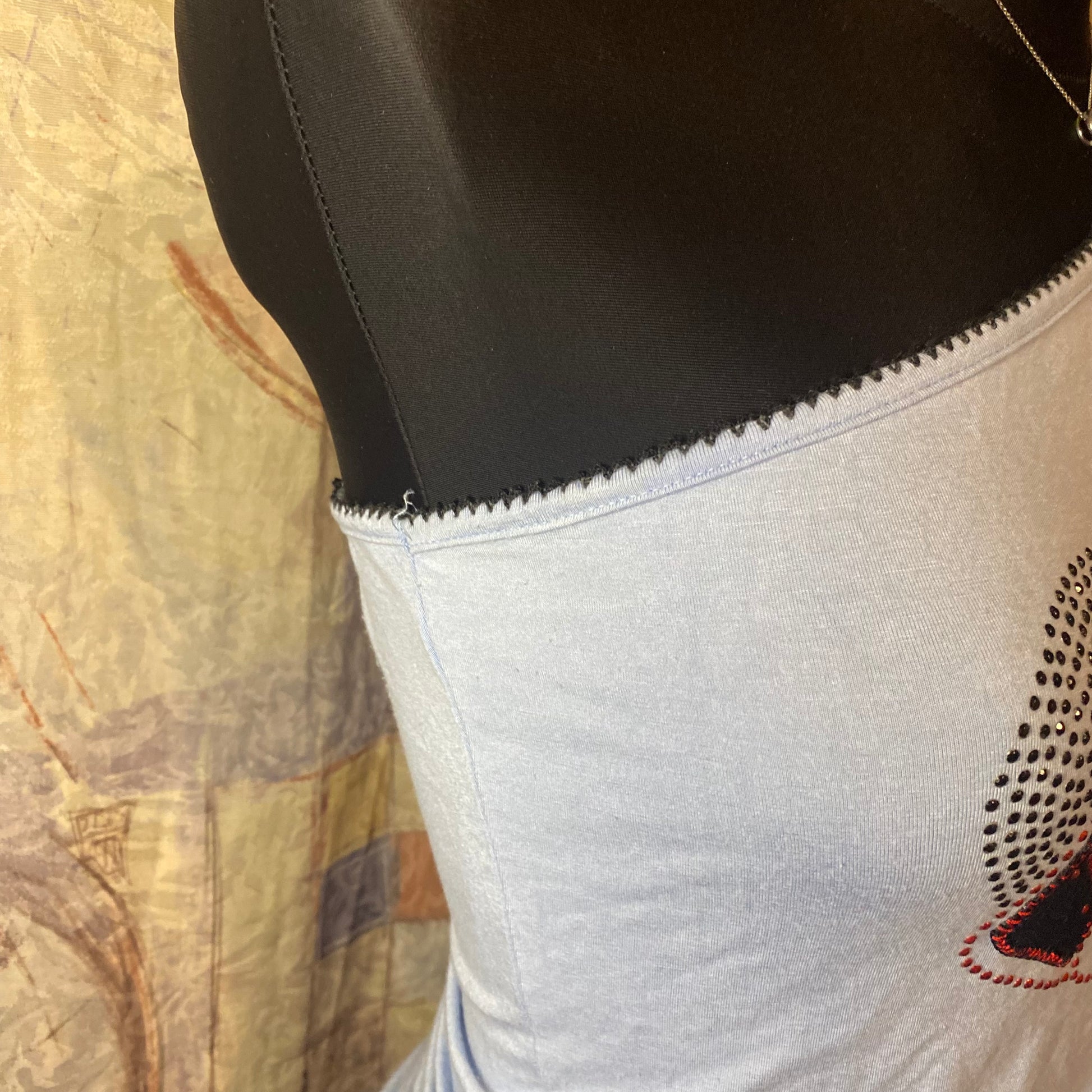 No visible defects. All rhinestones seem to be in place. Extremely soft and good quality material. Good fit at the top, so it won’t fall off that easily. Flattering fit.
