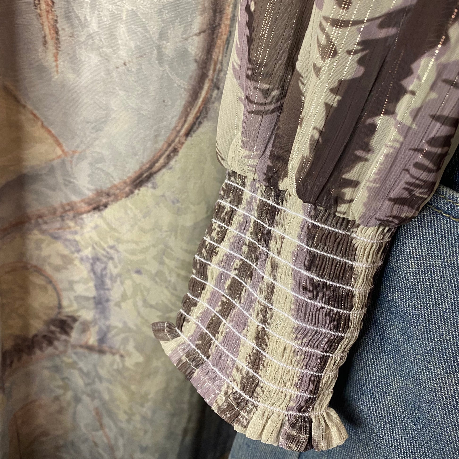 Has sparkly lines all over. No visible defects. Good quality material. A bit see-through design. Extremely flattering fit.