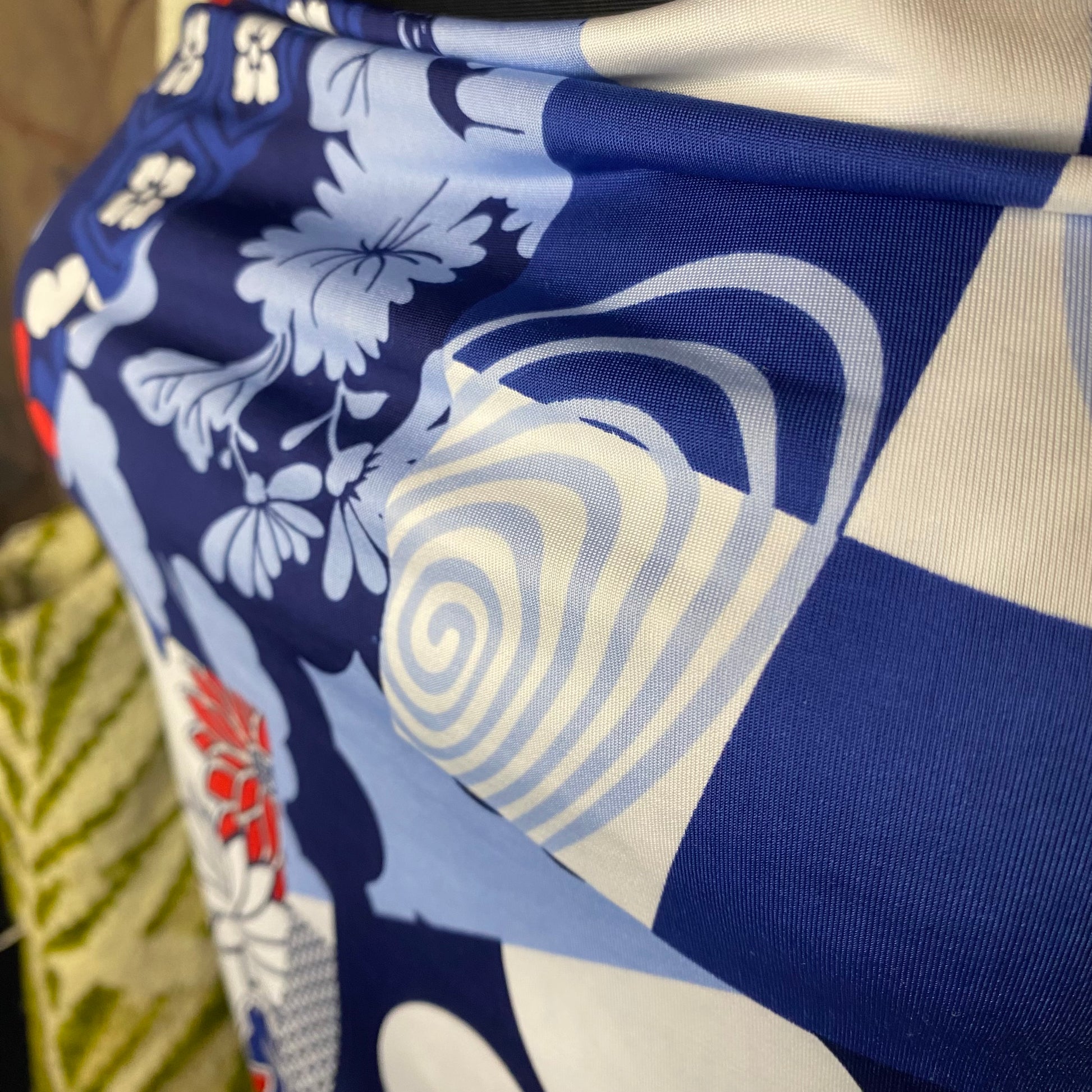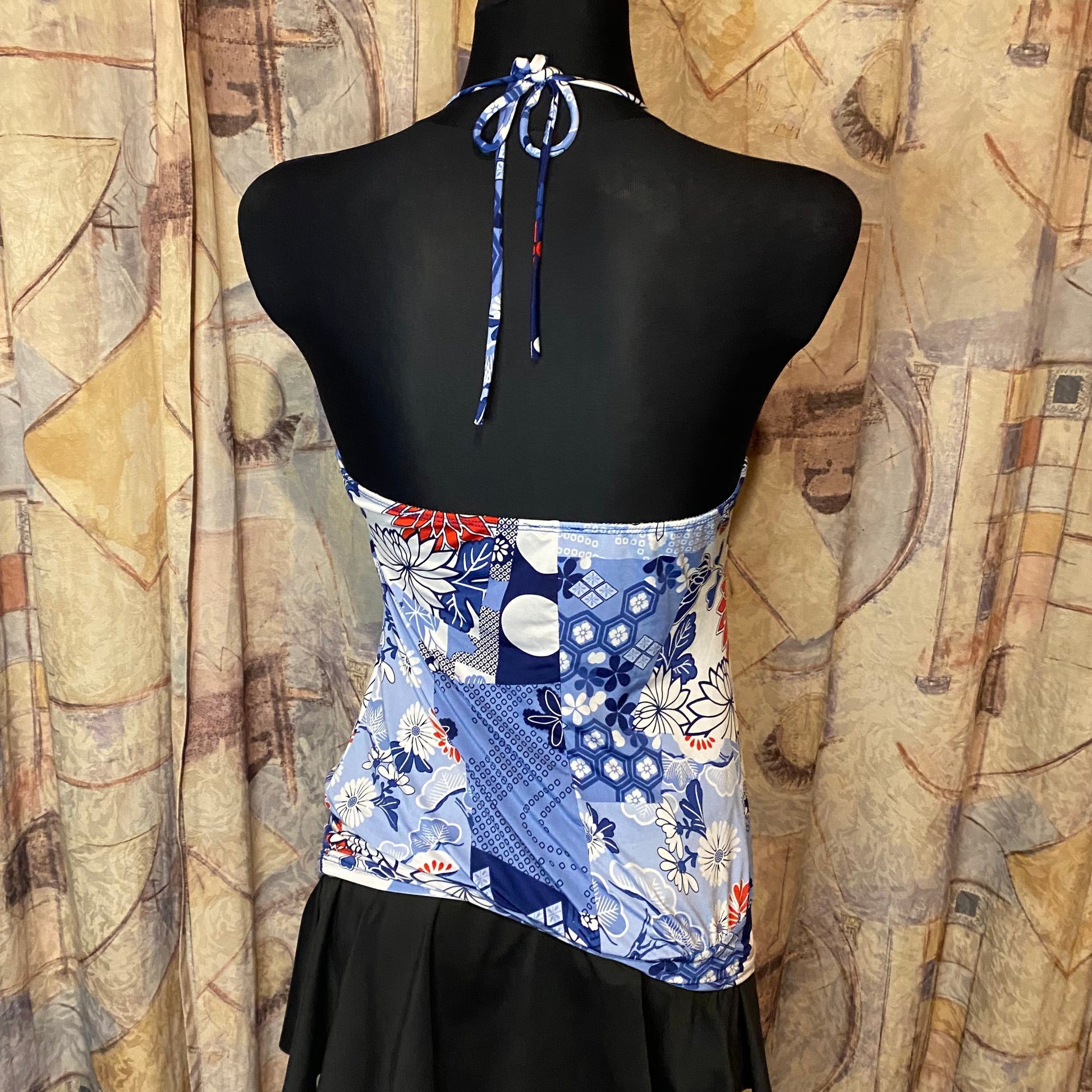 Good quality, stretchy material, is not see-through. No visible defects. Very flattering fit. Can be tied up behind the neck for the perfect fit.