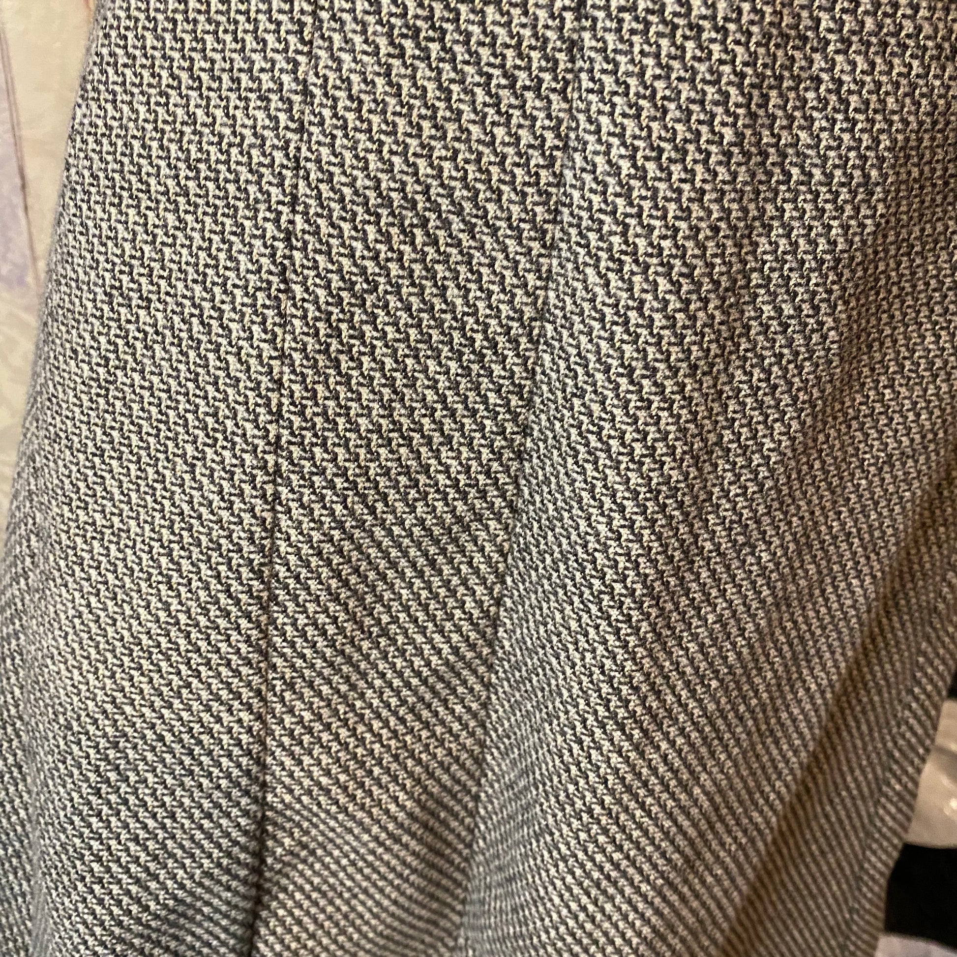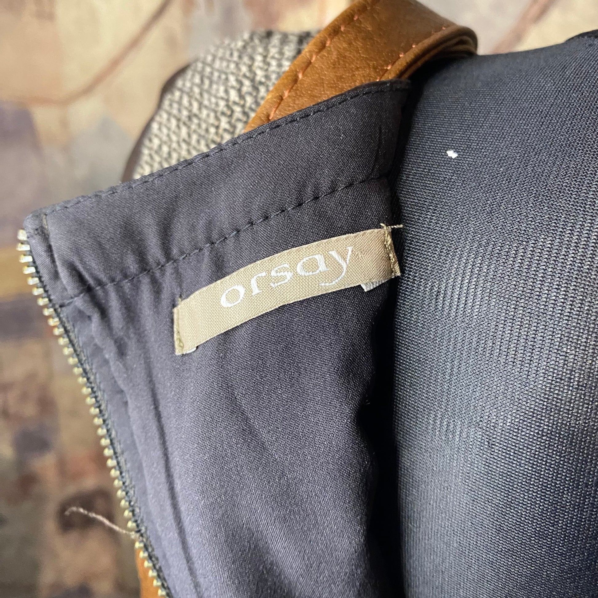 The shoulders are made of leather. Super cute and flattering fit. Rare find. No visible defects. Material is thick and heavy, doesn't stretch much. No size label, but fits the mannequin well (size EU36/S).