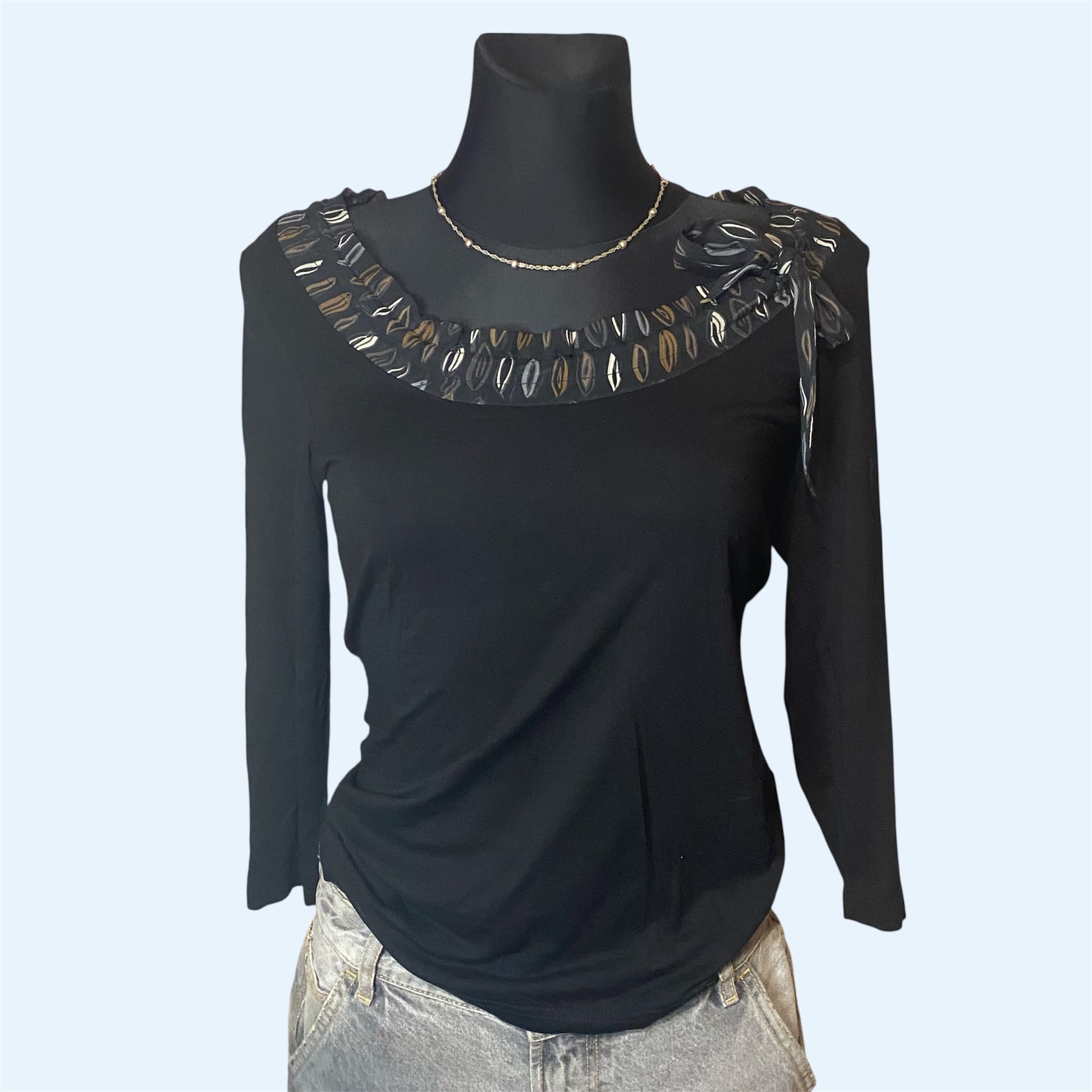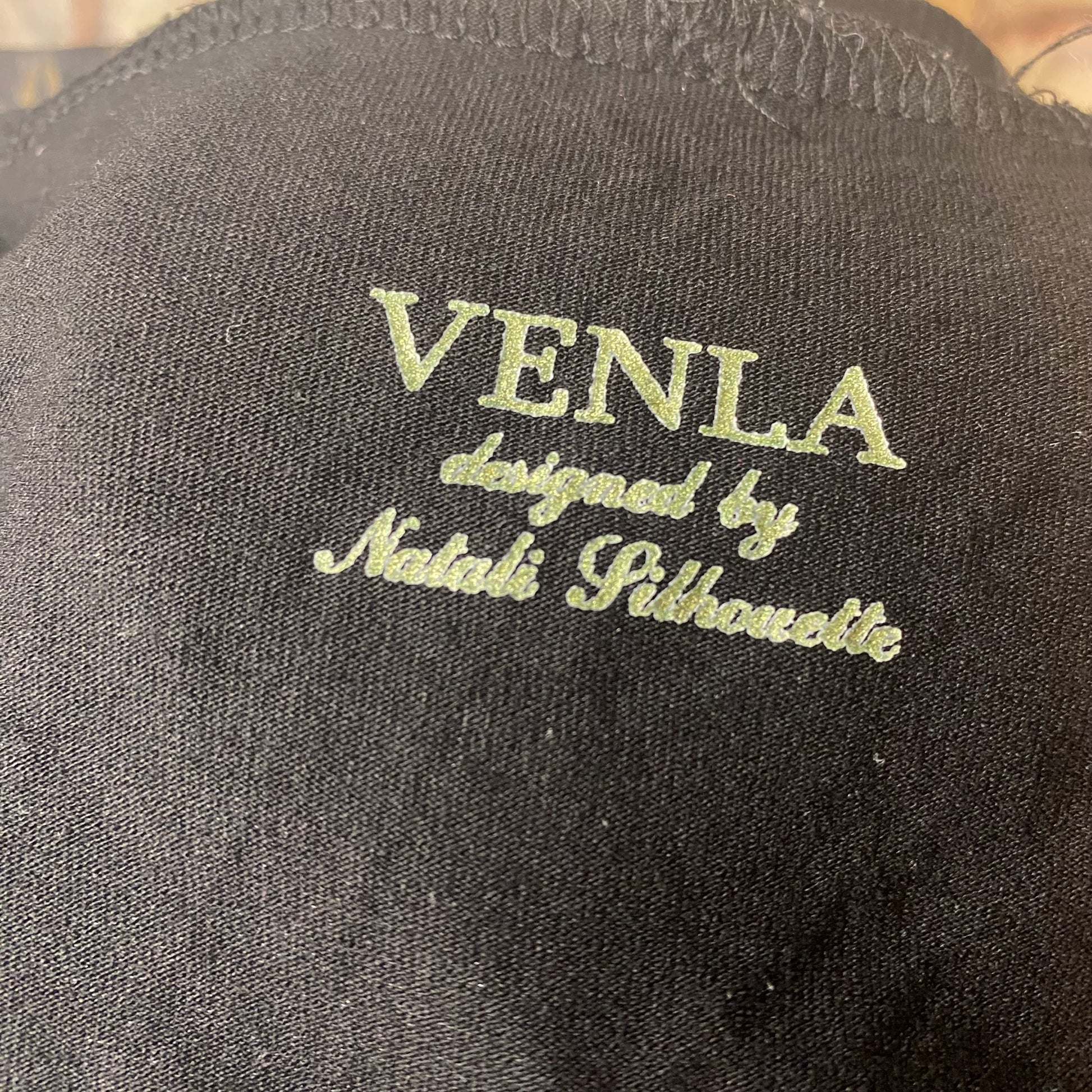 No visible defects. Good quality material. Medium stretch. The top part can be tied up as wanted and needed. Flattering fit.
