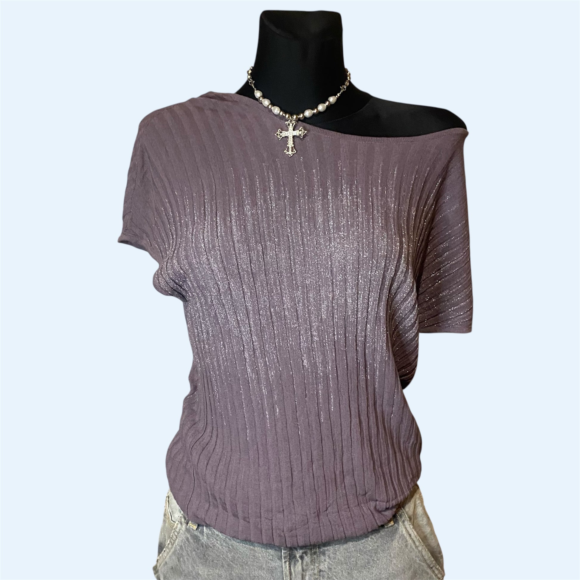 Vintage look purple off-shoulder blouse