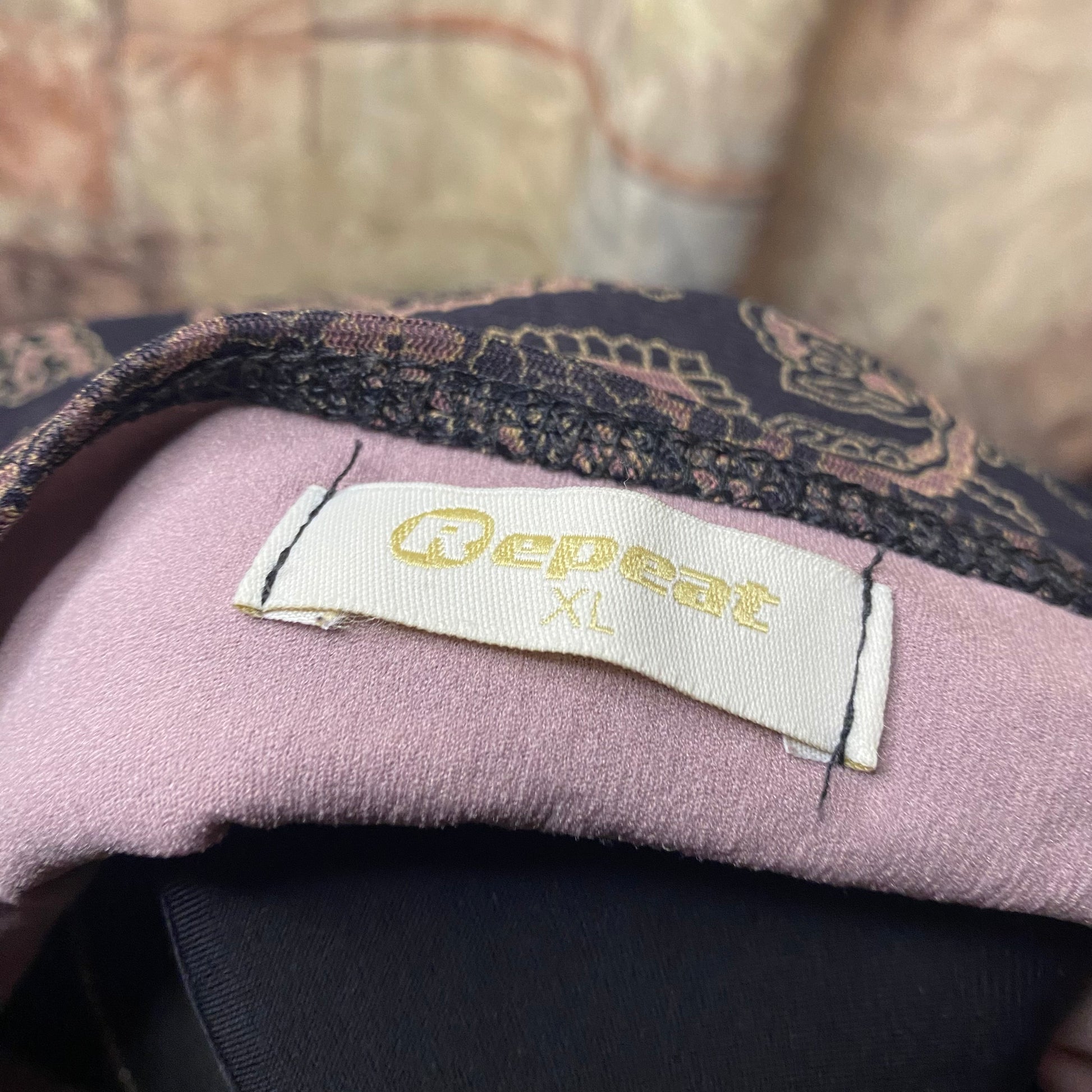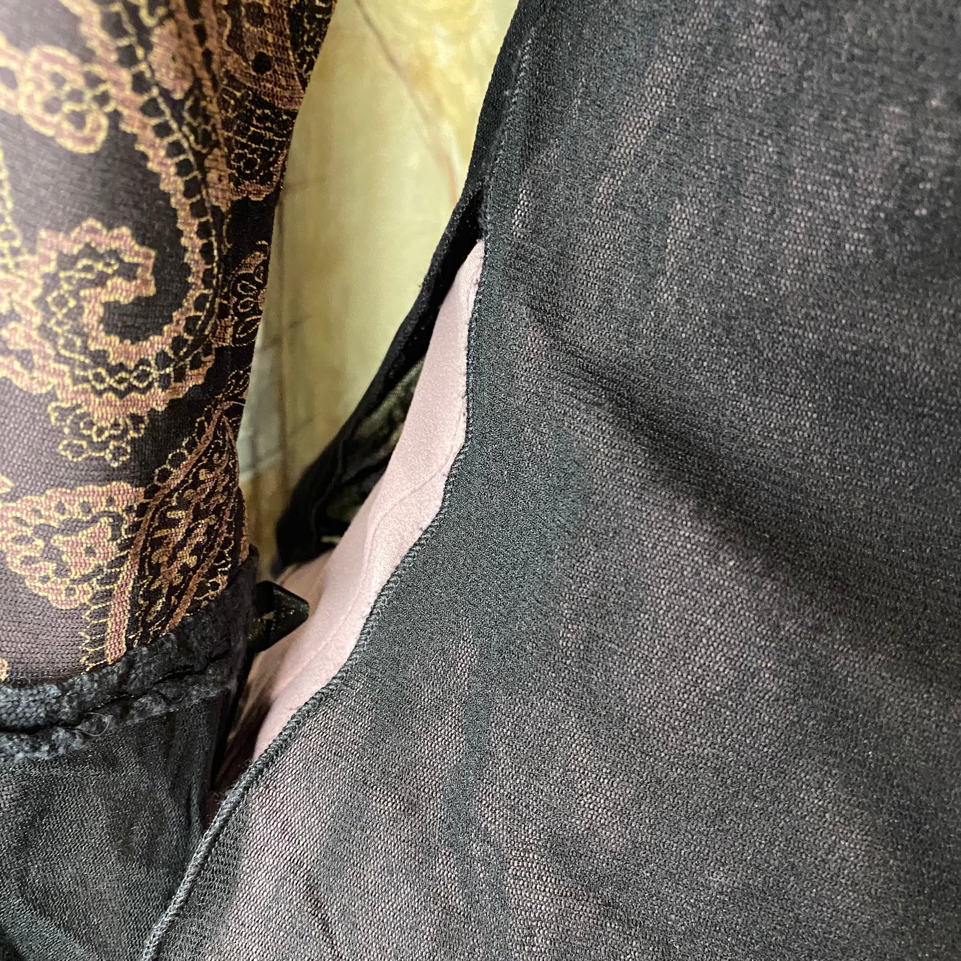 It has so many different materials that make the shirt much more flattering. Stretchy, good quality material. No visible defects. Size XL, but will definitely fit size S just as nicely (the mannequin is size EU36). Super rare find!