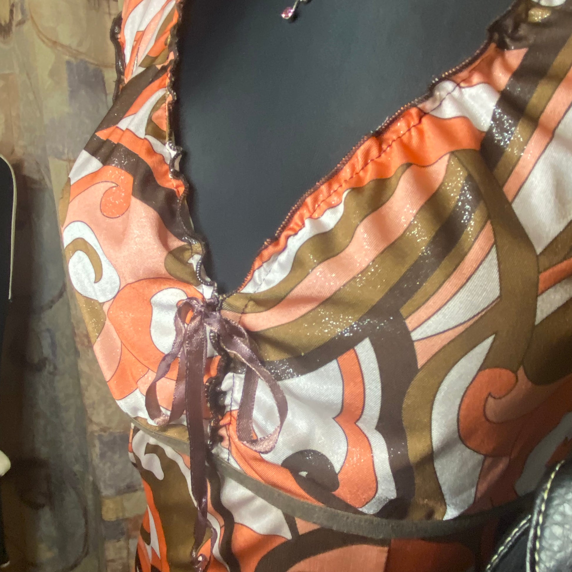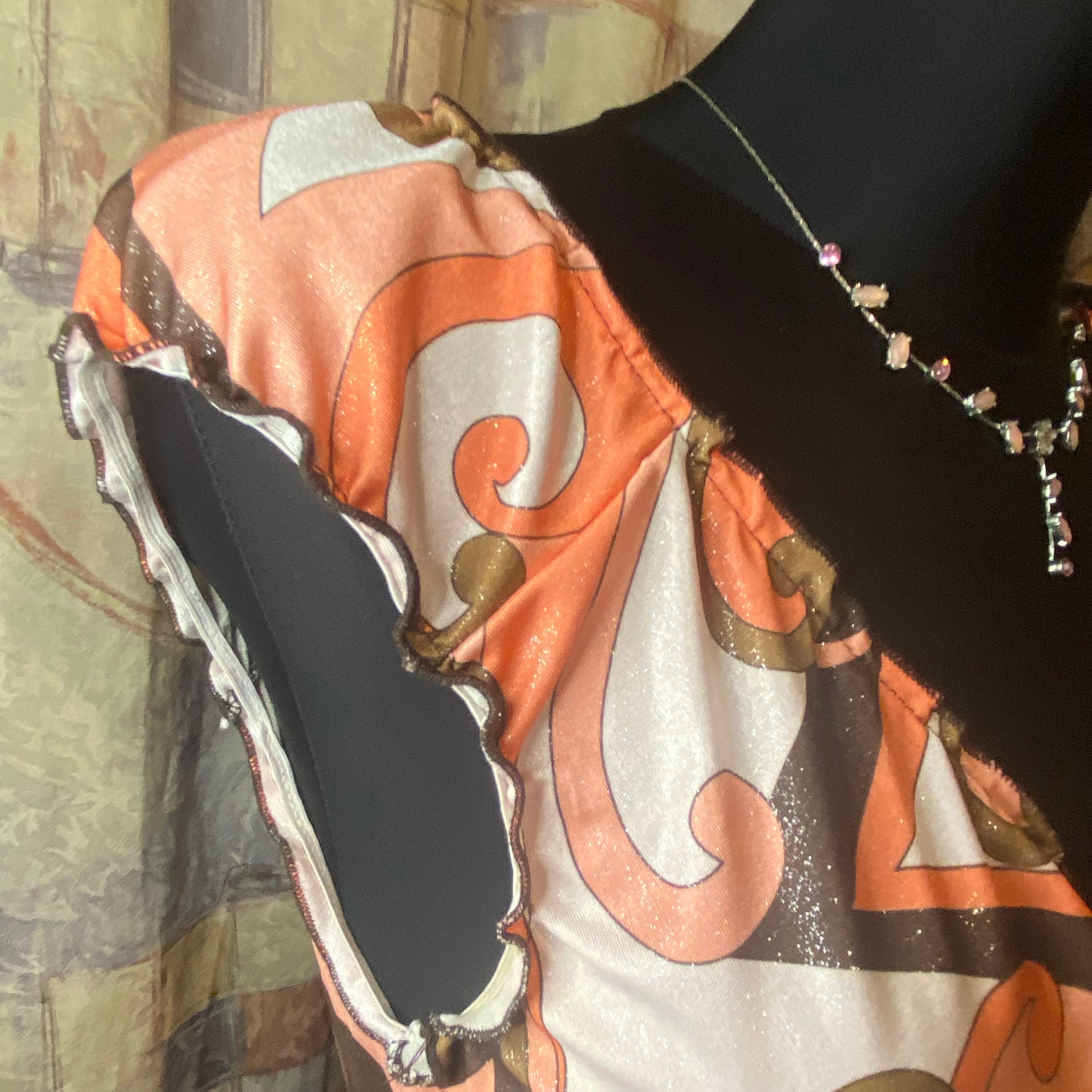 No visible defects. Very stretchy and sparkly material. The sparkles don't fall off since they are part of the material. Ruffled ends. The bottom of the dress has tulle for design. Babydoll x bodycon fit.