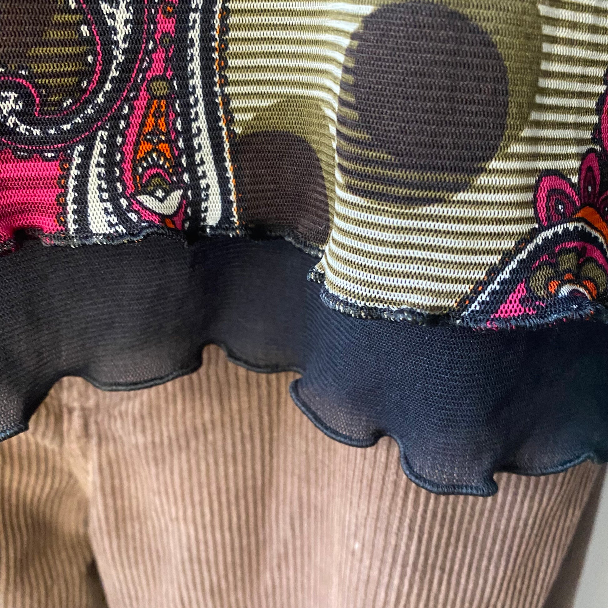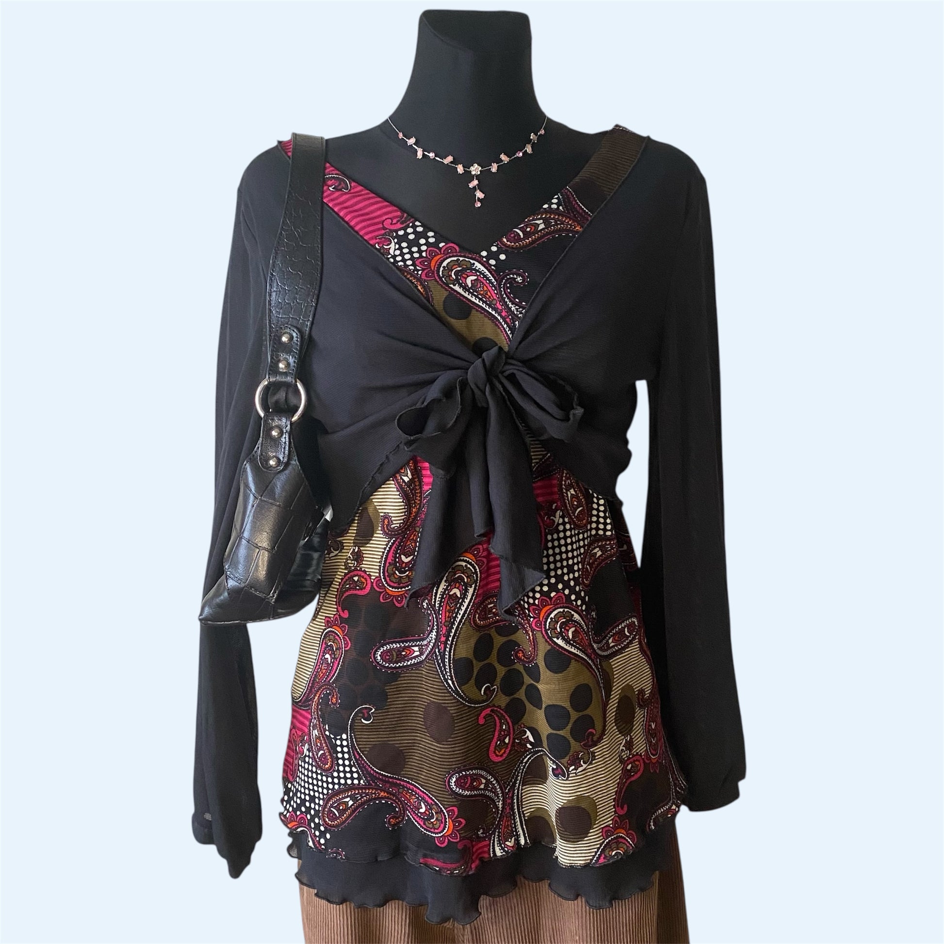 Good quality material. Extremely stretchy. Can be tied up as necessary. Both tops are sewn together, therefore both are included in the purchase. Flattering fit. No visible defects. Is quite a large size, but can also be worn by smaller sizes, since the black tie up part makes ir fit perfectly how you want. The mannequins’ size is 36EUR (size S).