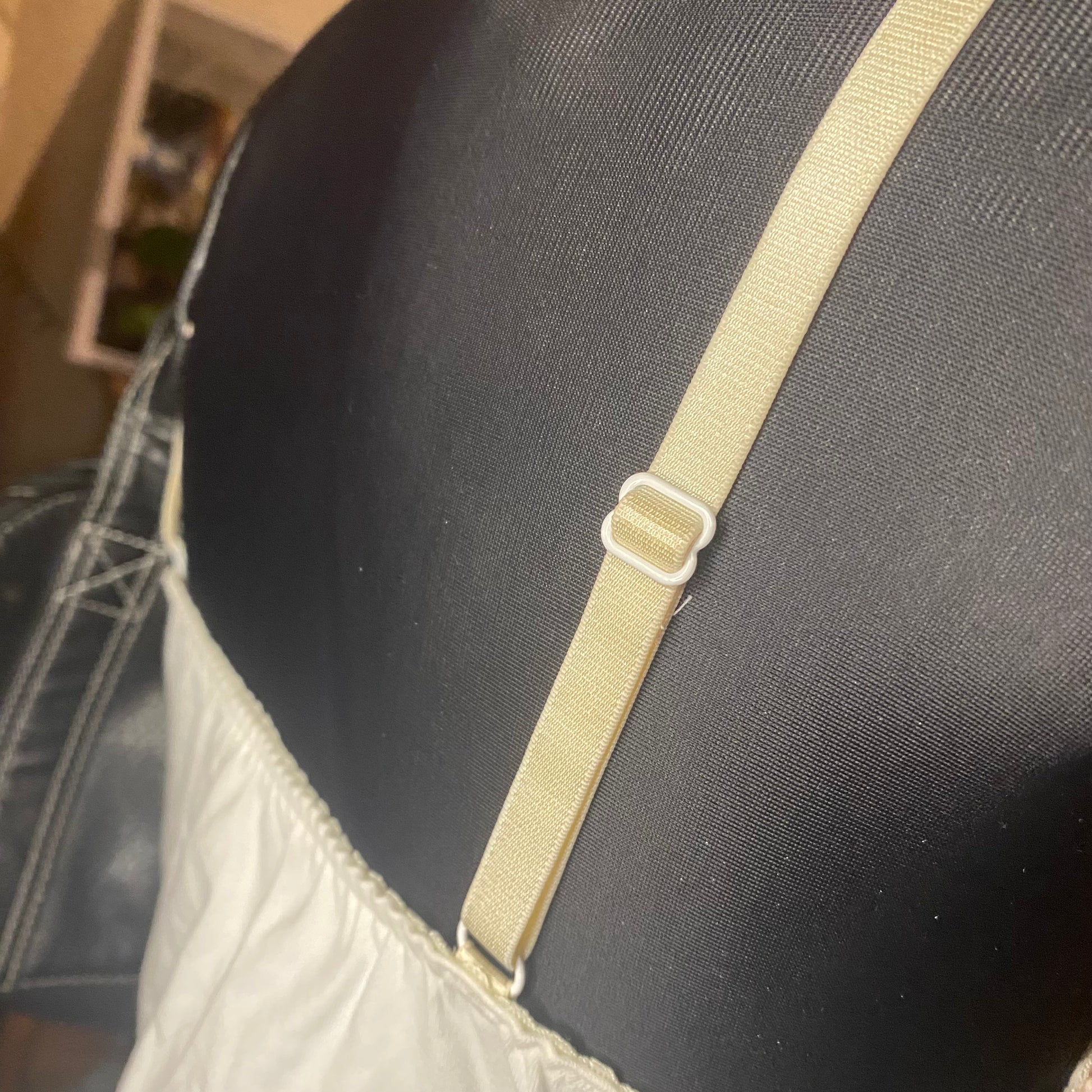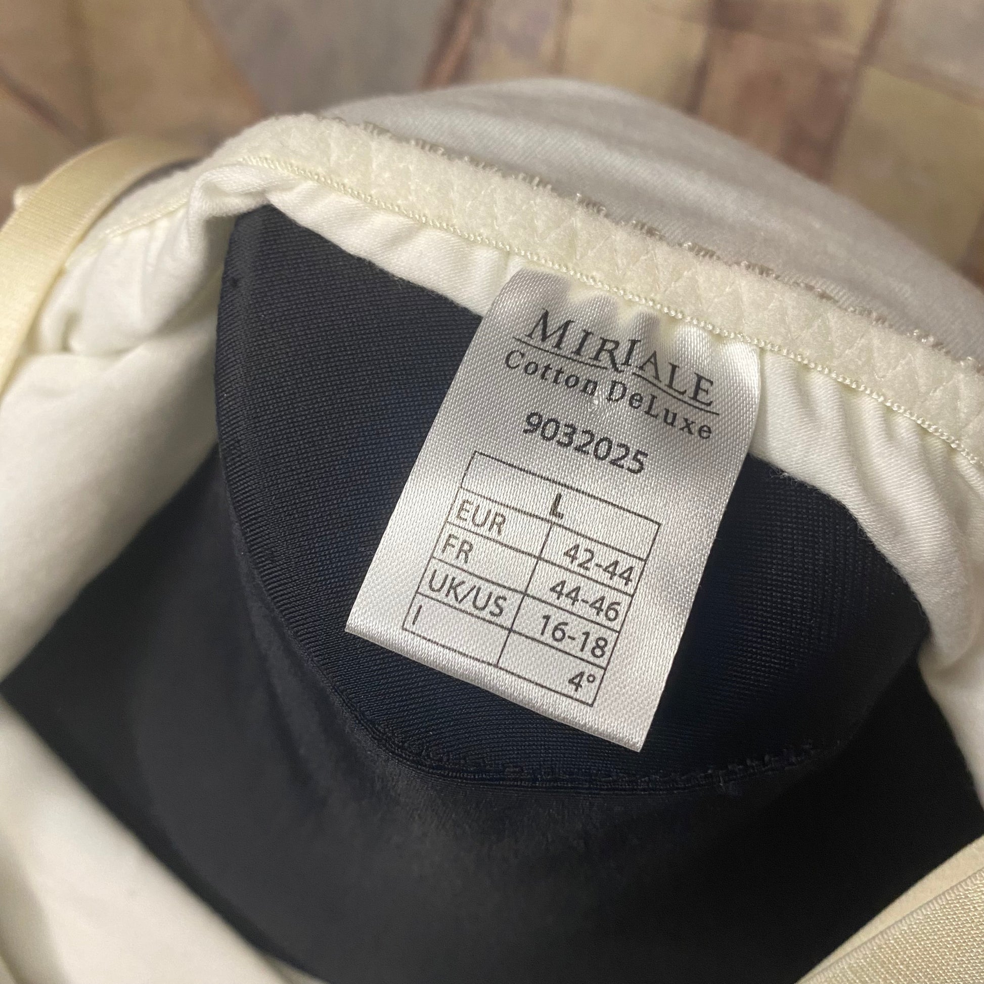 Good quality material. No visible defects. Very stretchy and thick. Not see-through. The straps are adjustable. Size L, but will definitely fit size S and up.