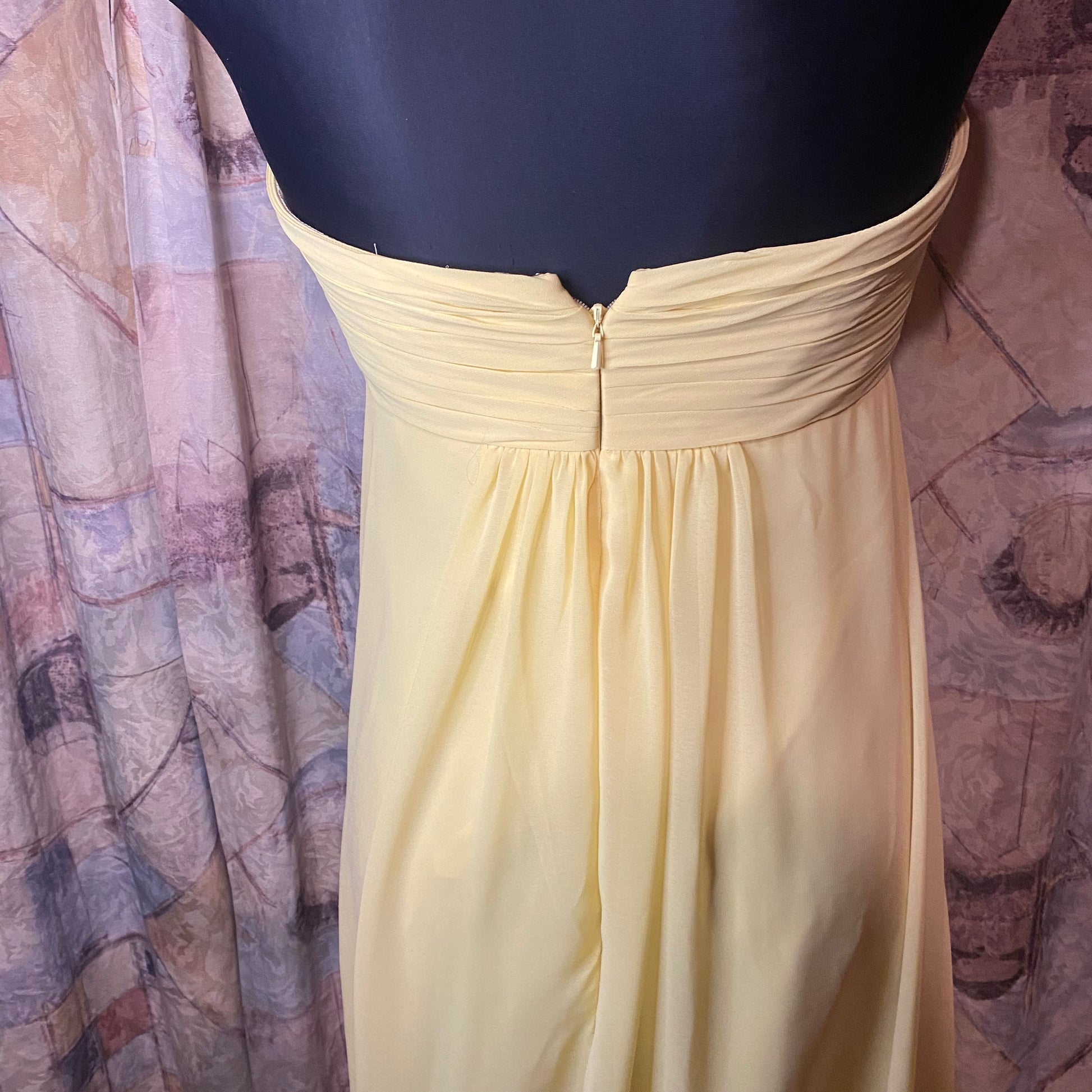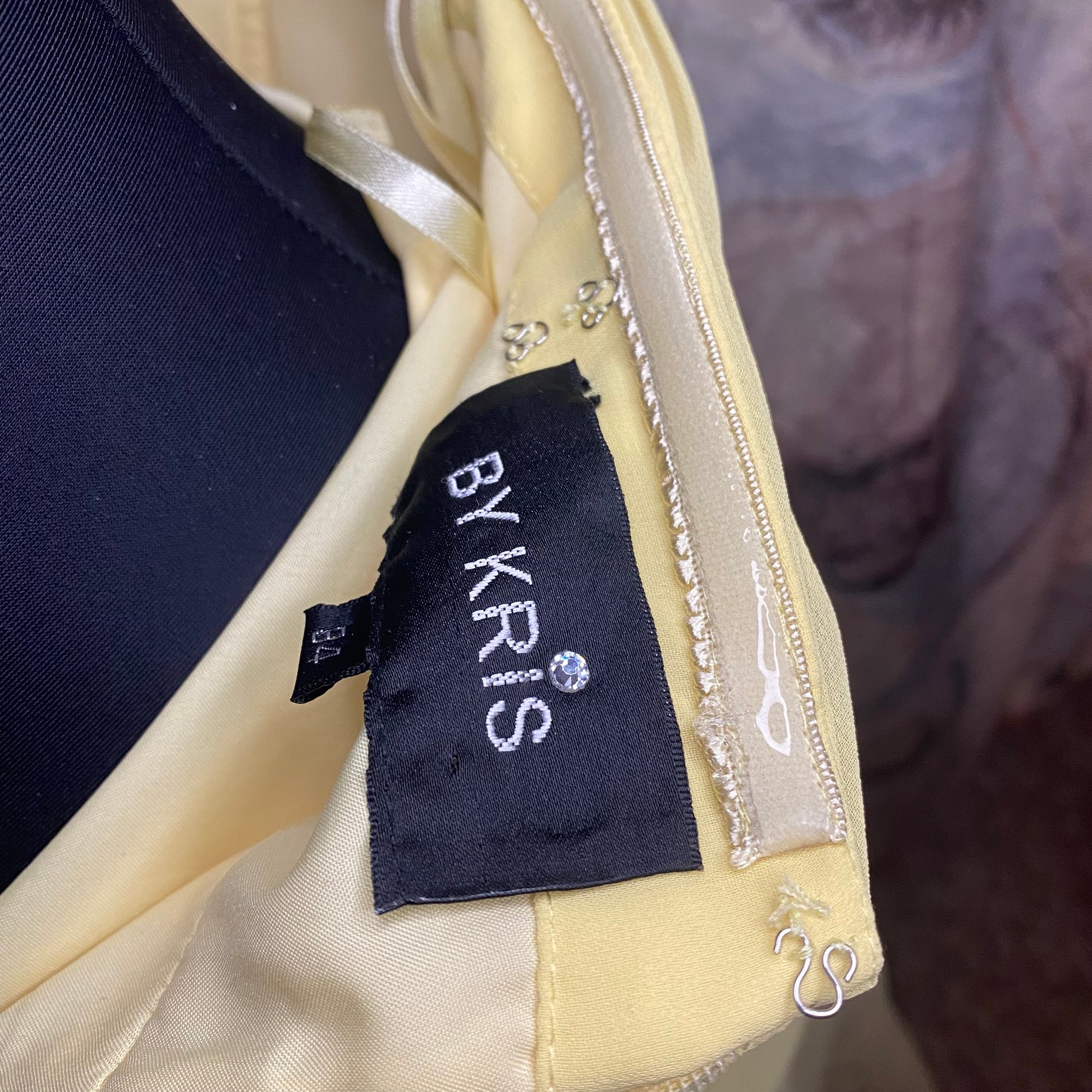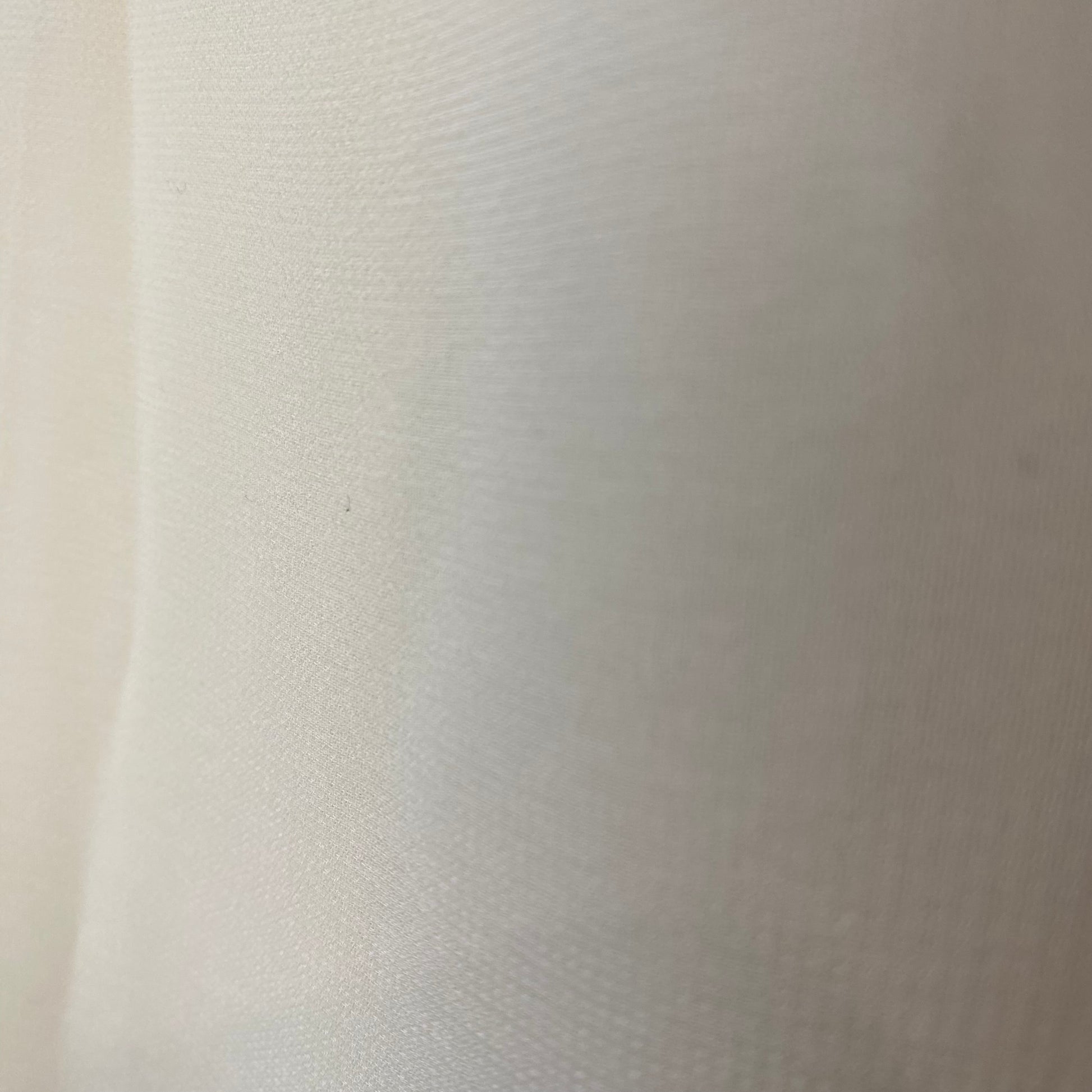 No visible defects. Ruching in various places makes it look more flattering on body. Super flowy material. The top part has silicone strips so it doesn’t slide off. Very heavy and good quality material.